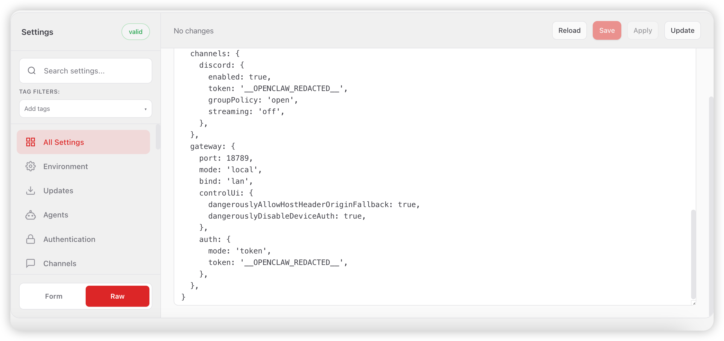 For more advanced configurations (e.g., allowlist, server/channel restrictions, private message settings), you can use the full configuration template as follows. Adjust the parameters according to your actual needs: