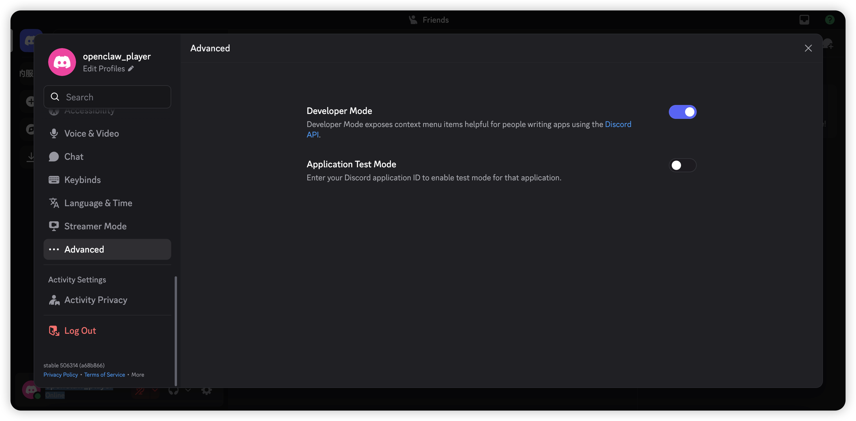 - Select "Advanced" in the left navigation bar, then enable "Developer Mode".