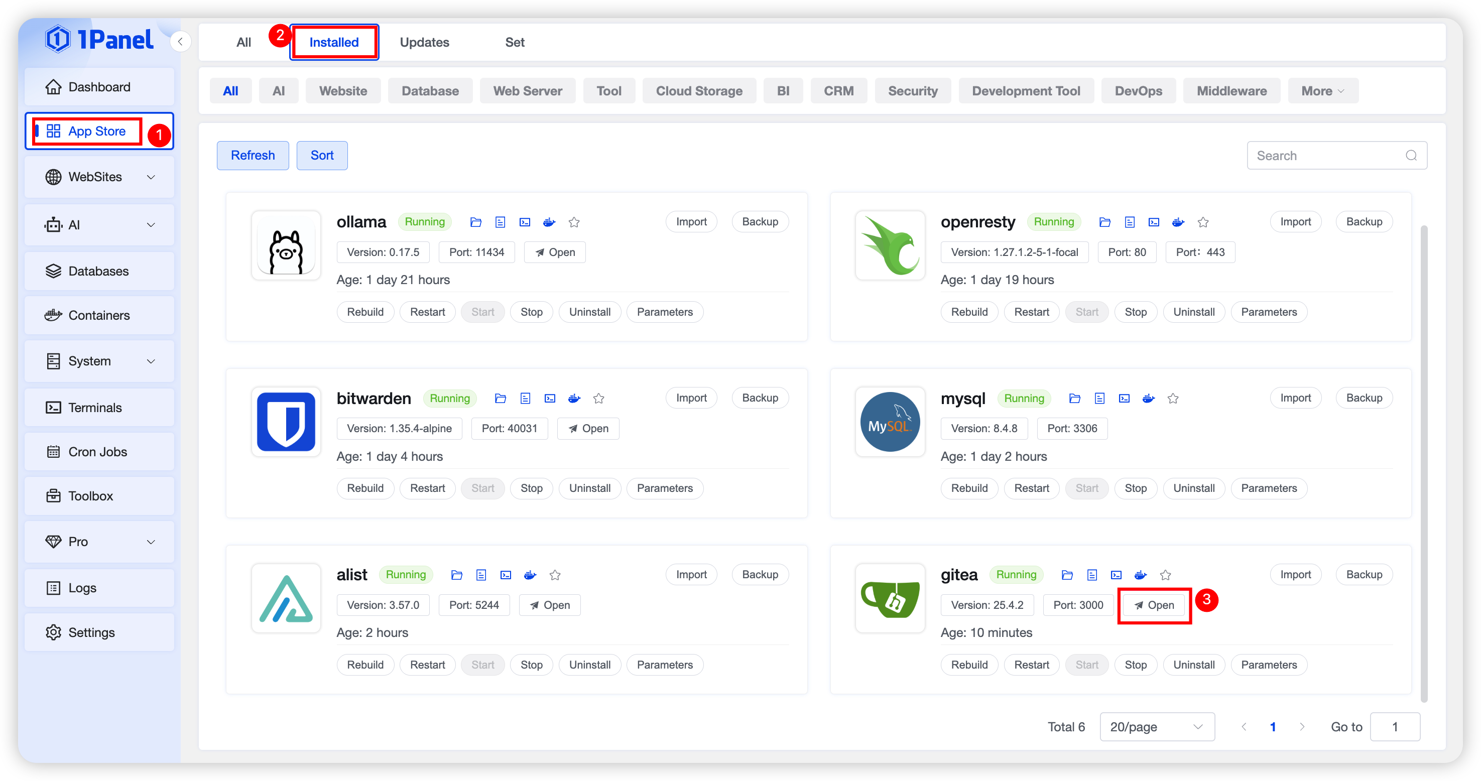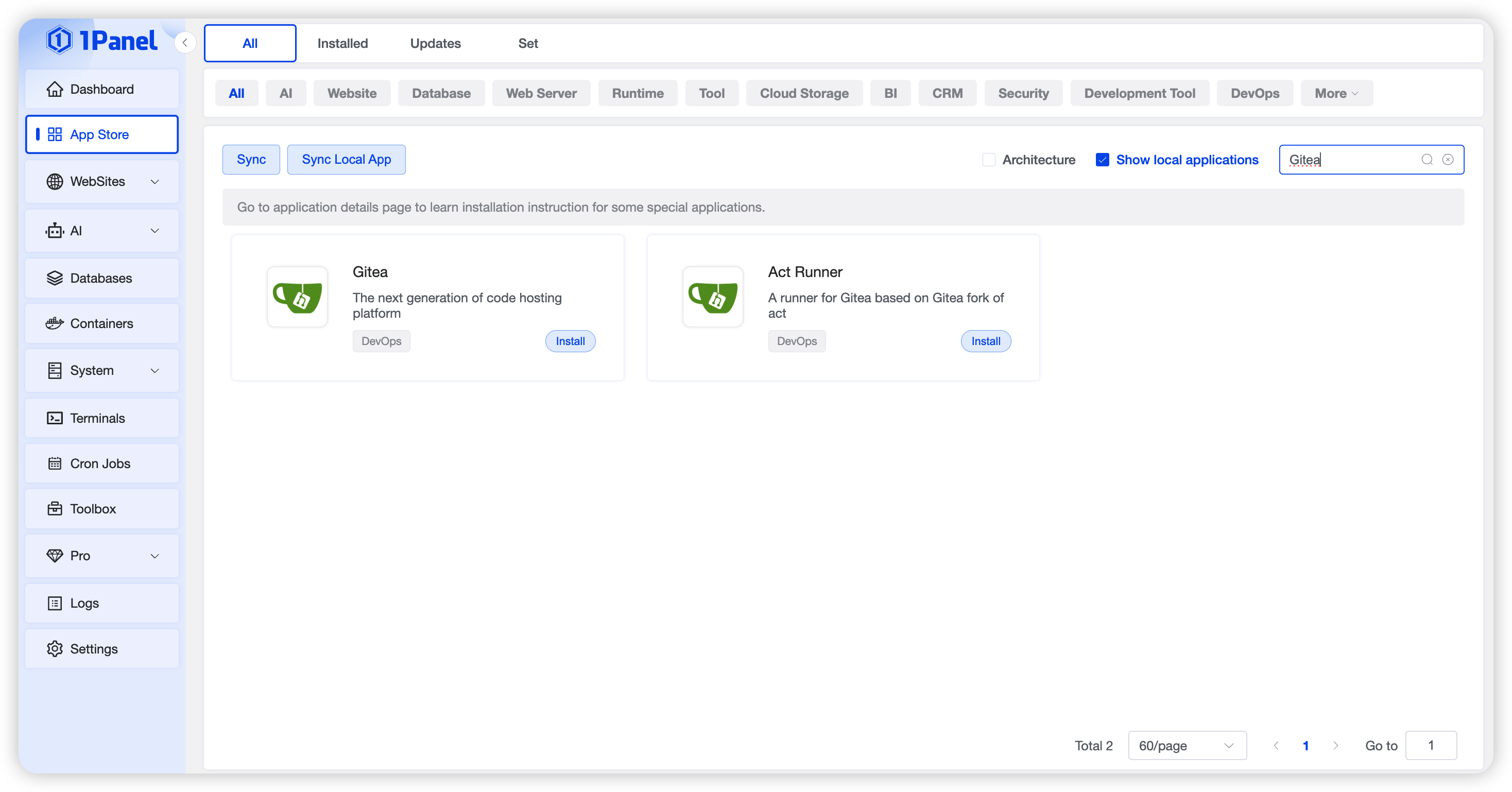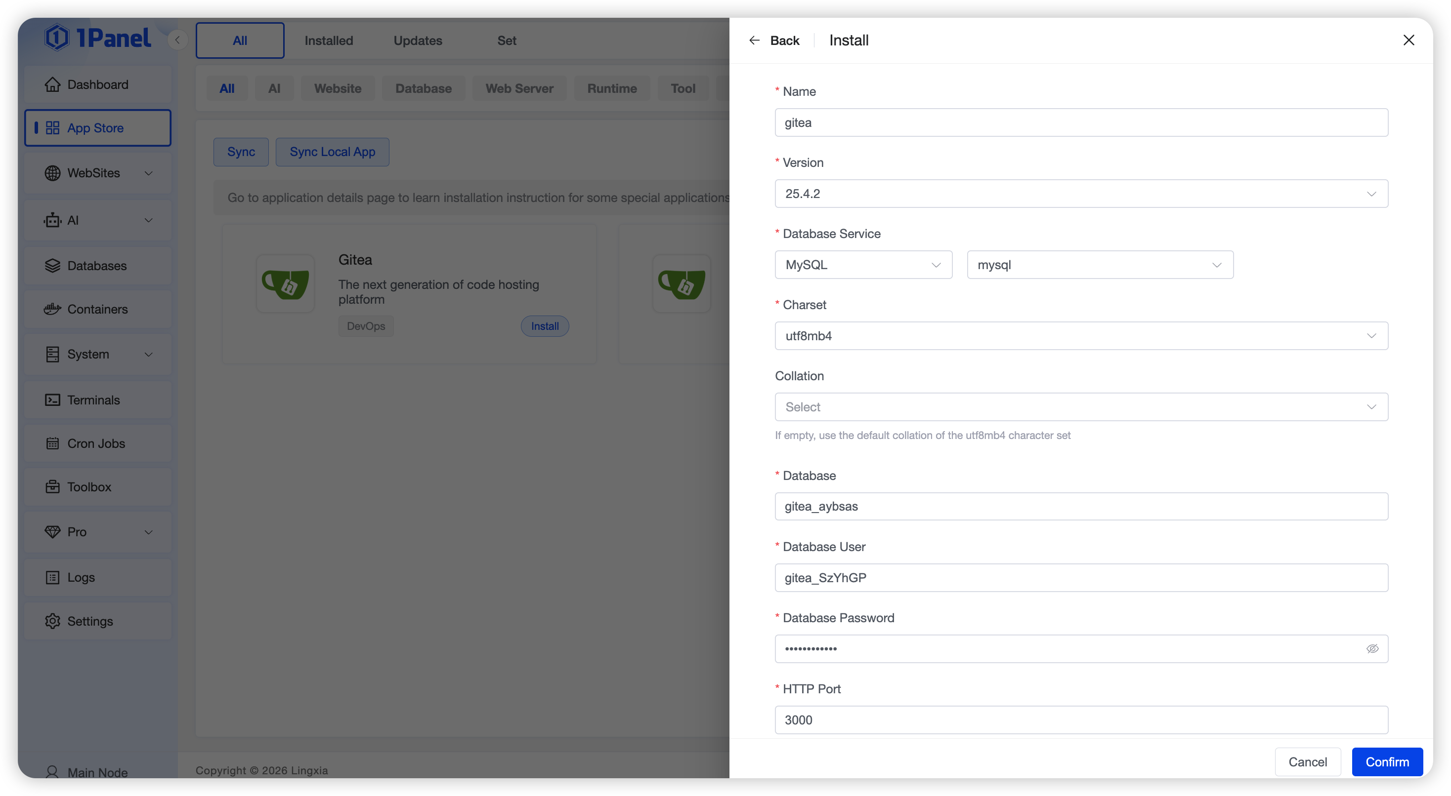 Install Gitea Visually Using 1Panel¶
