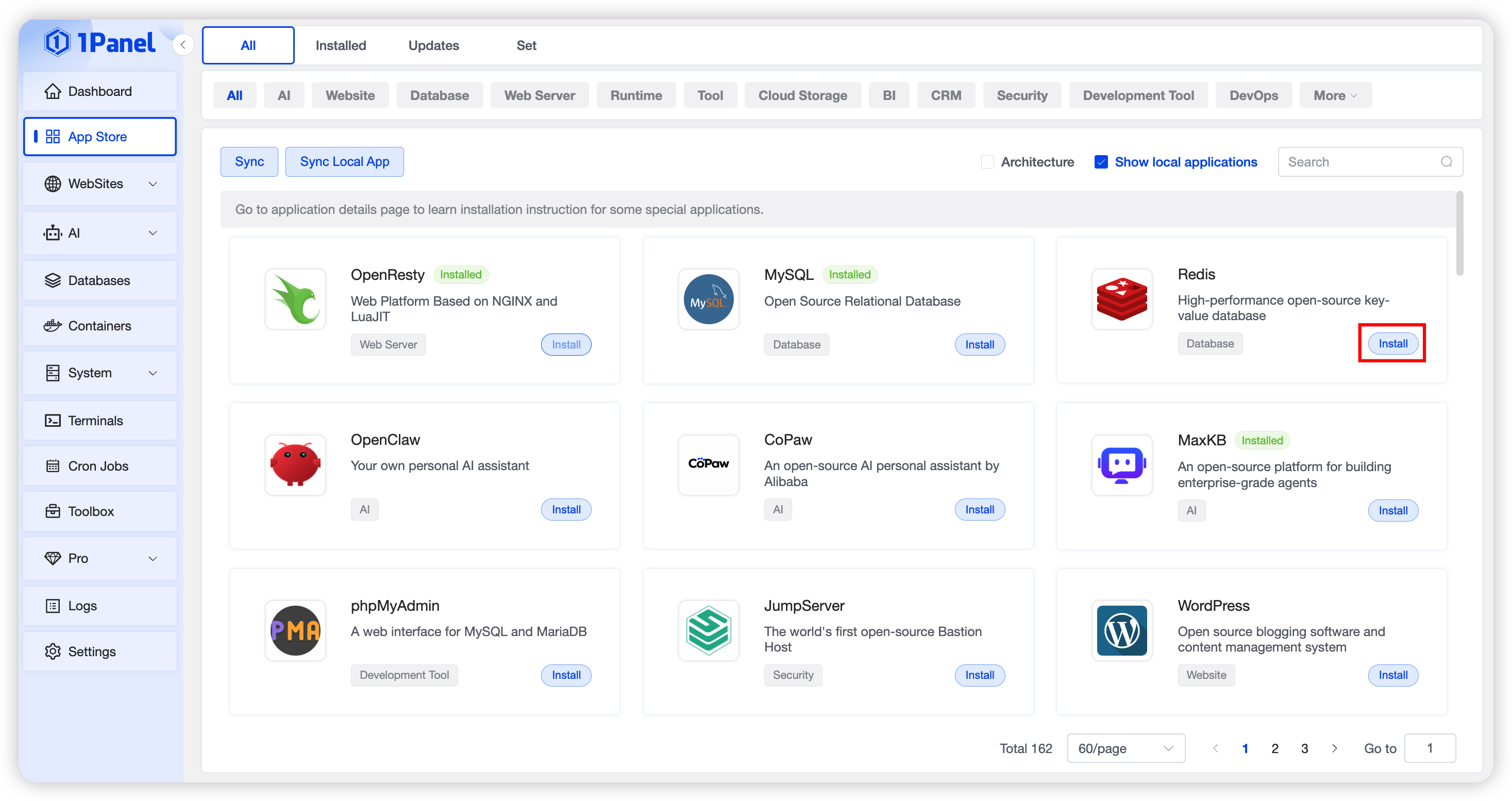 Locate and install the target application in the App Store list. You can browse by application category, or quickly search by entering keywords in the search box in the upper right corner.