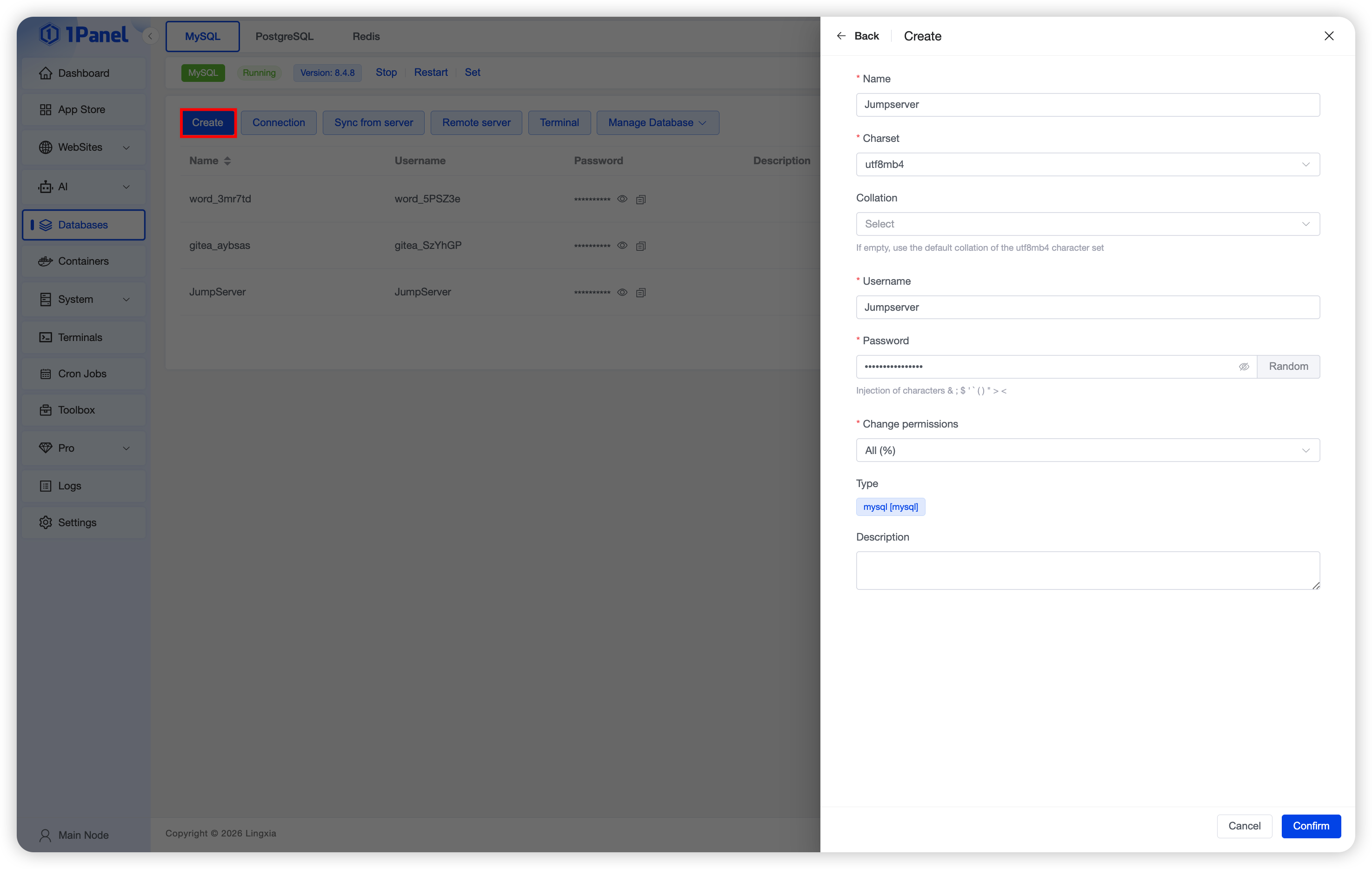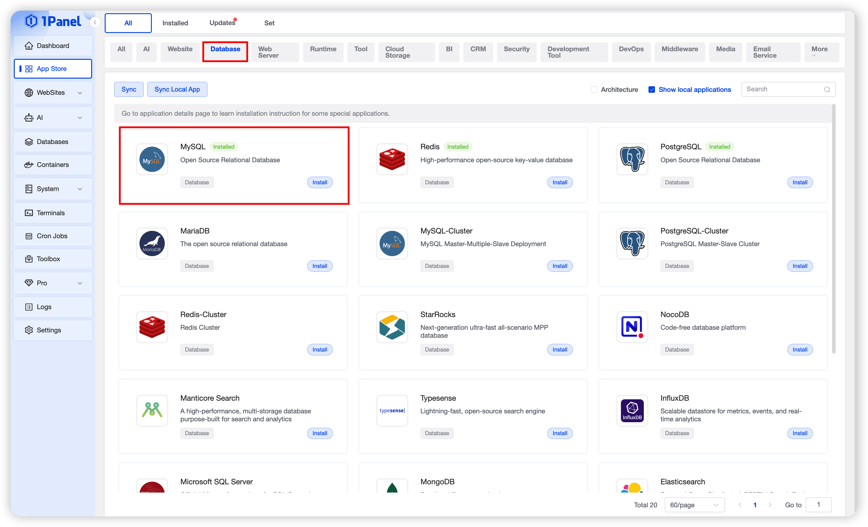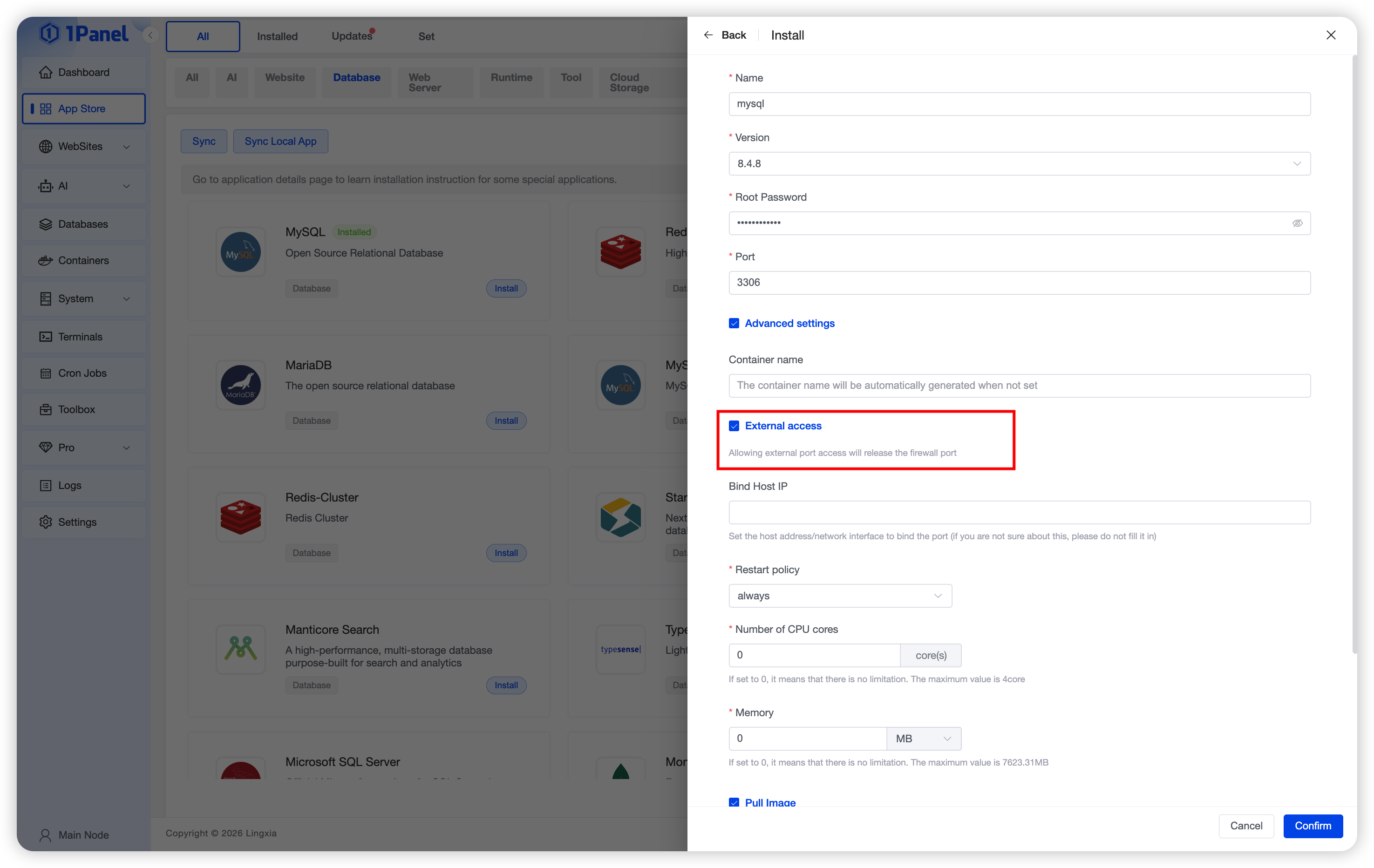 Install MySQL Visually Using 1Panel¶