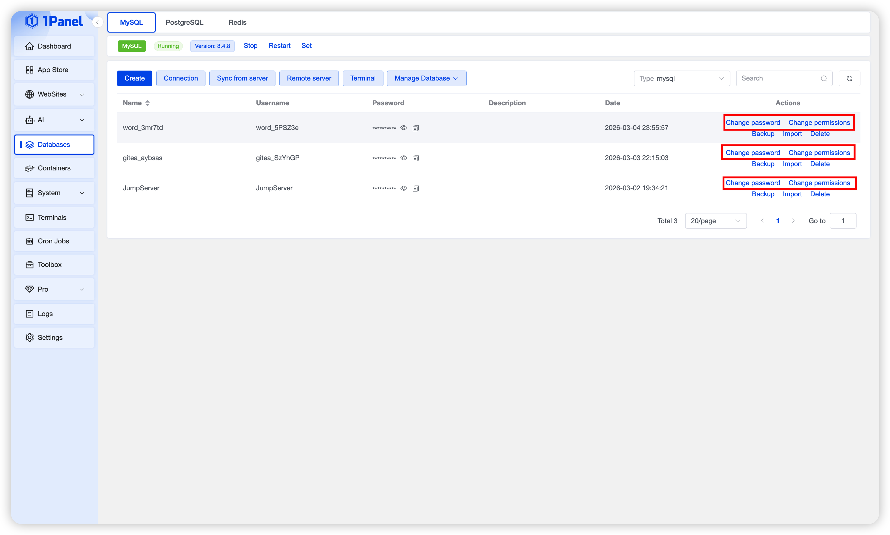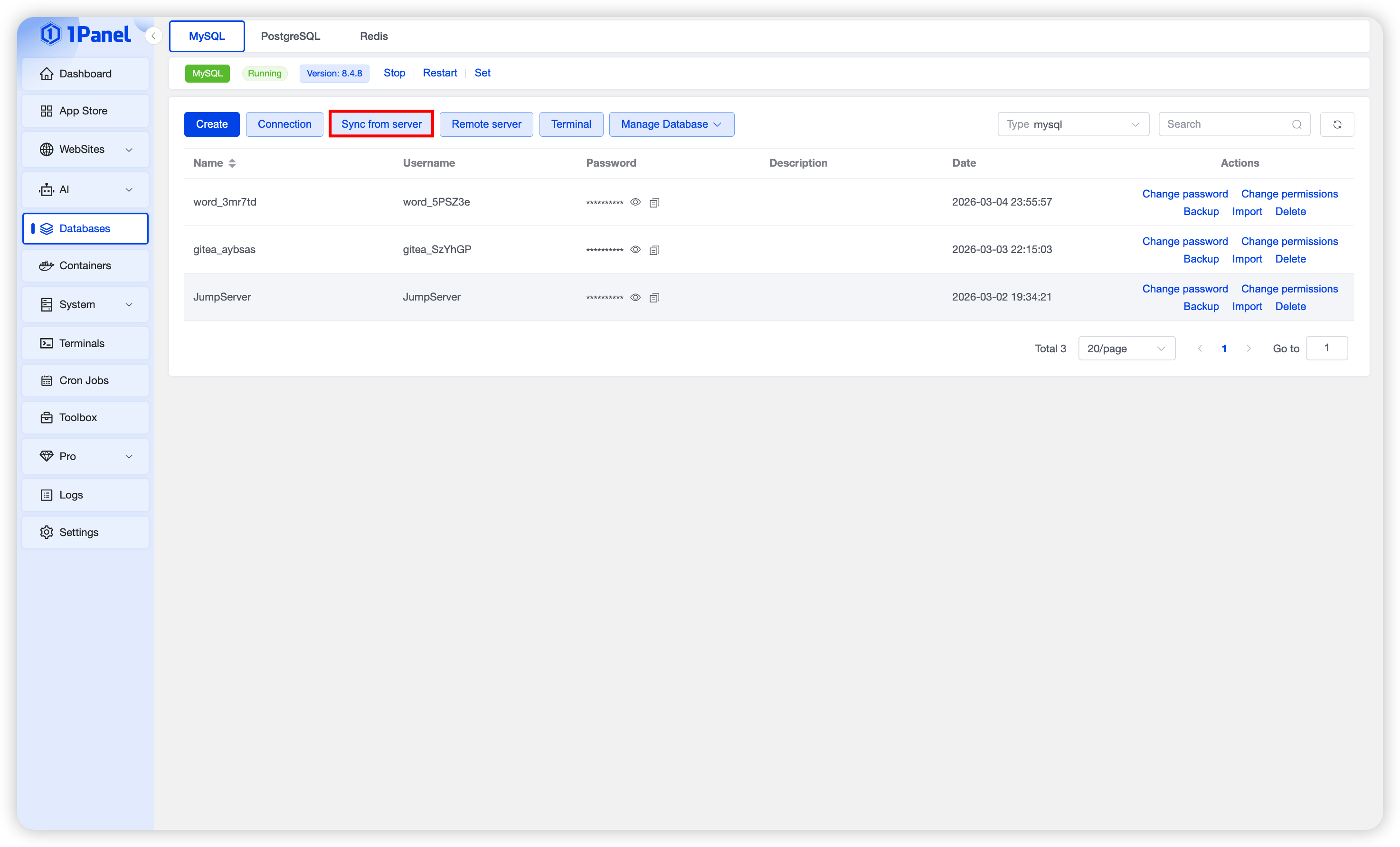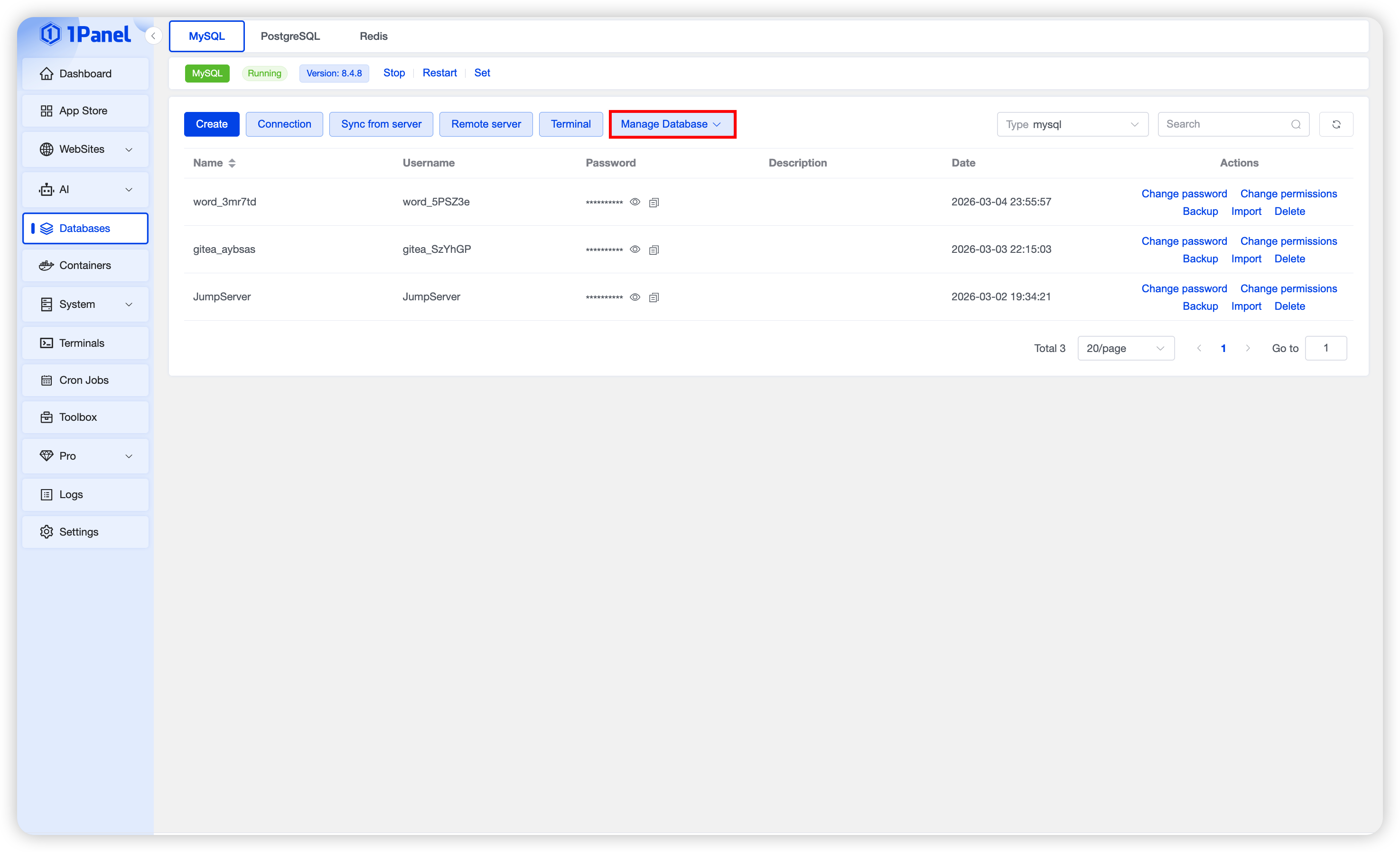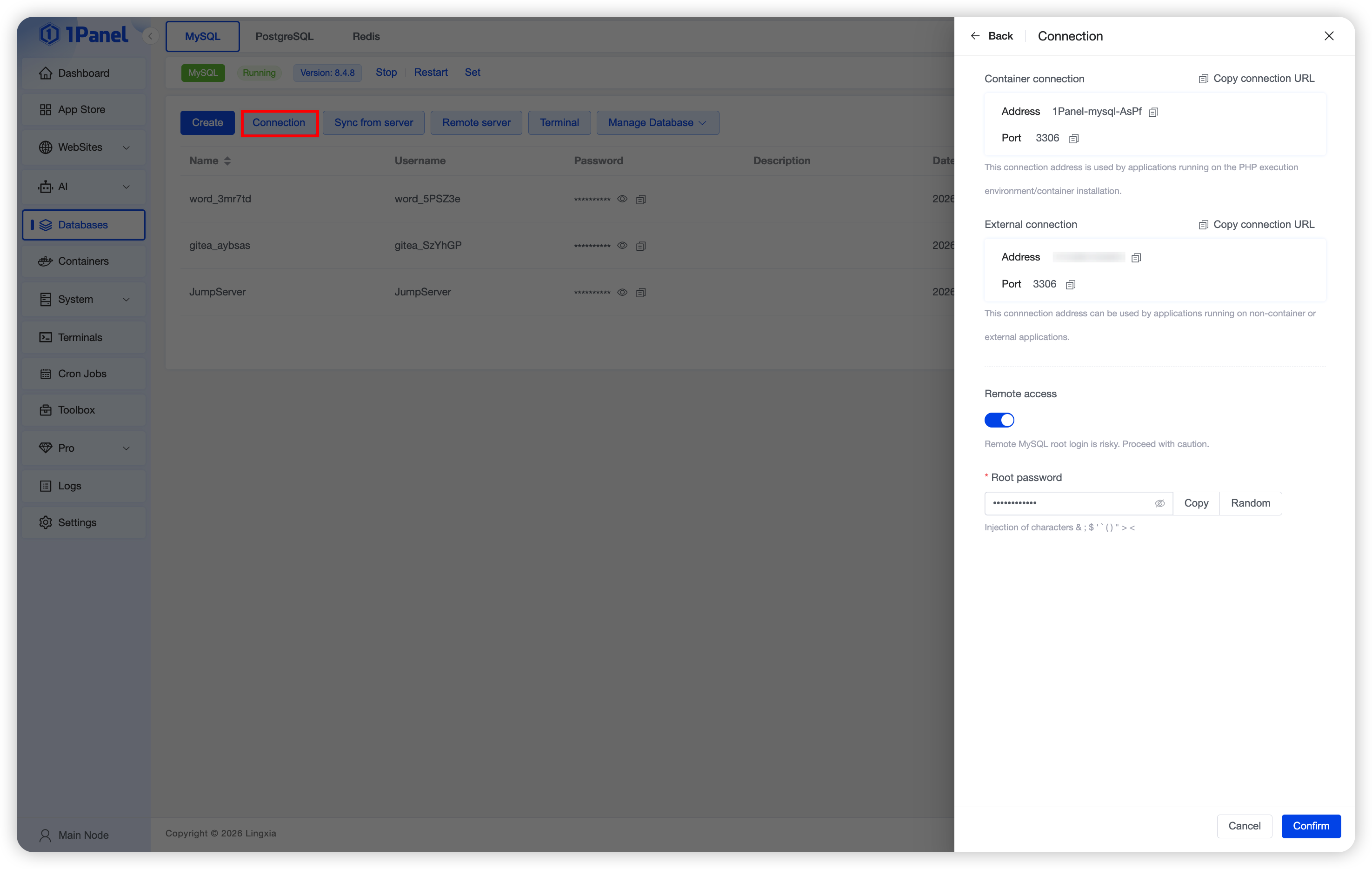 Install MySQL Visually Using 1Panel¶