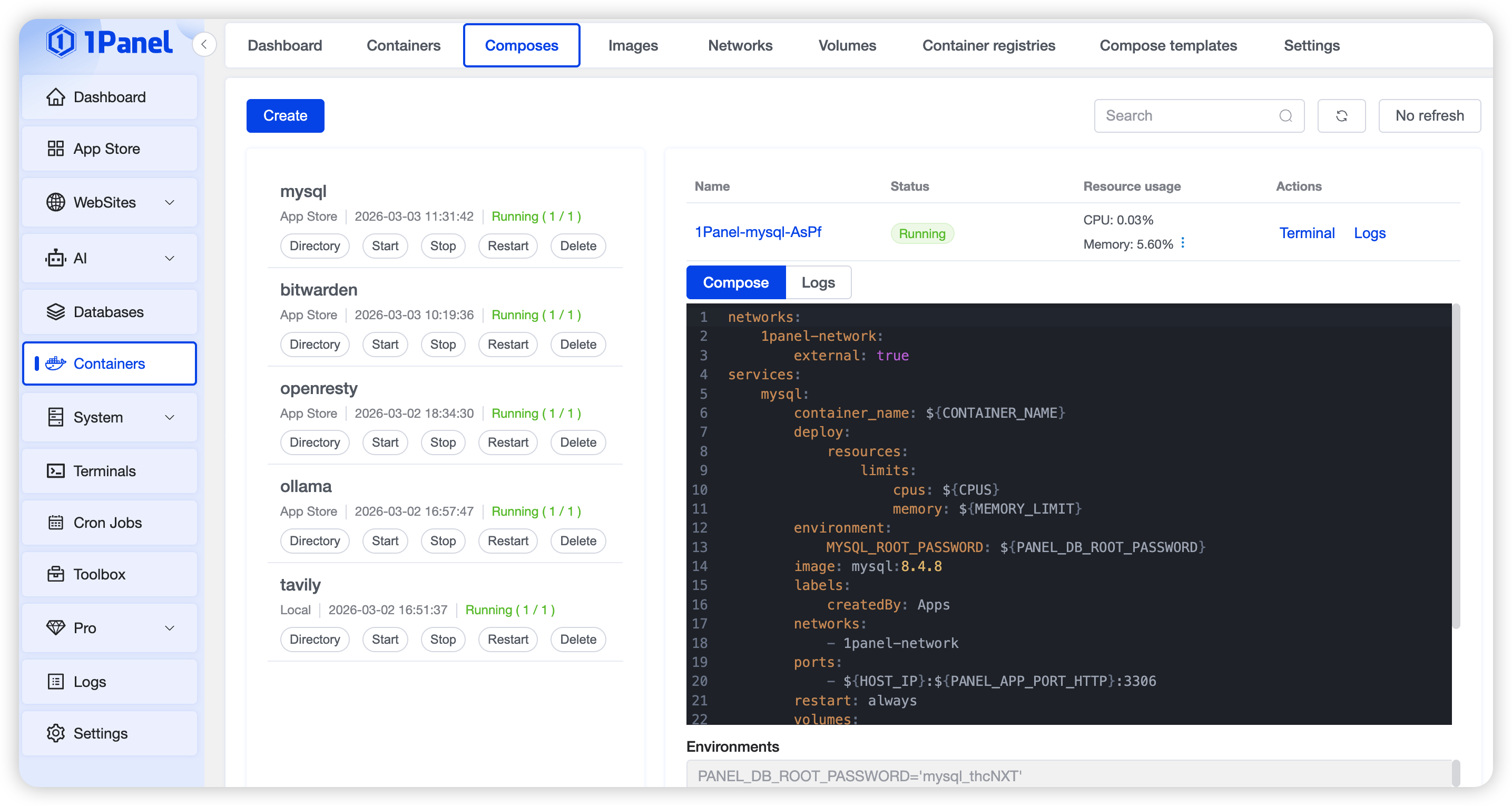 - 1Panel: Created through system orchestration