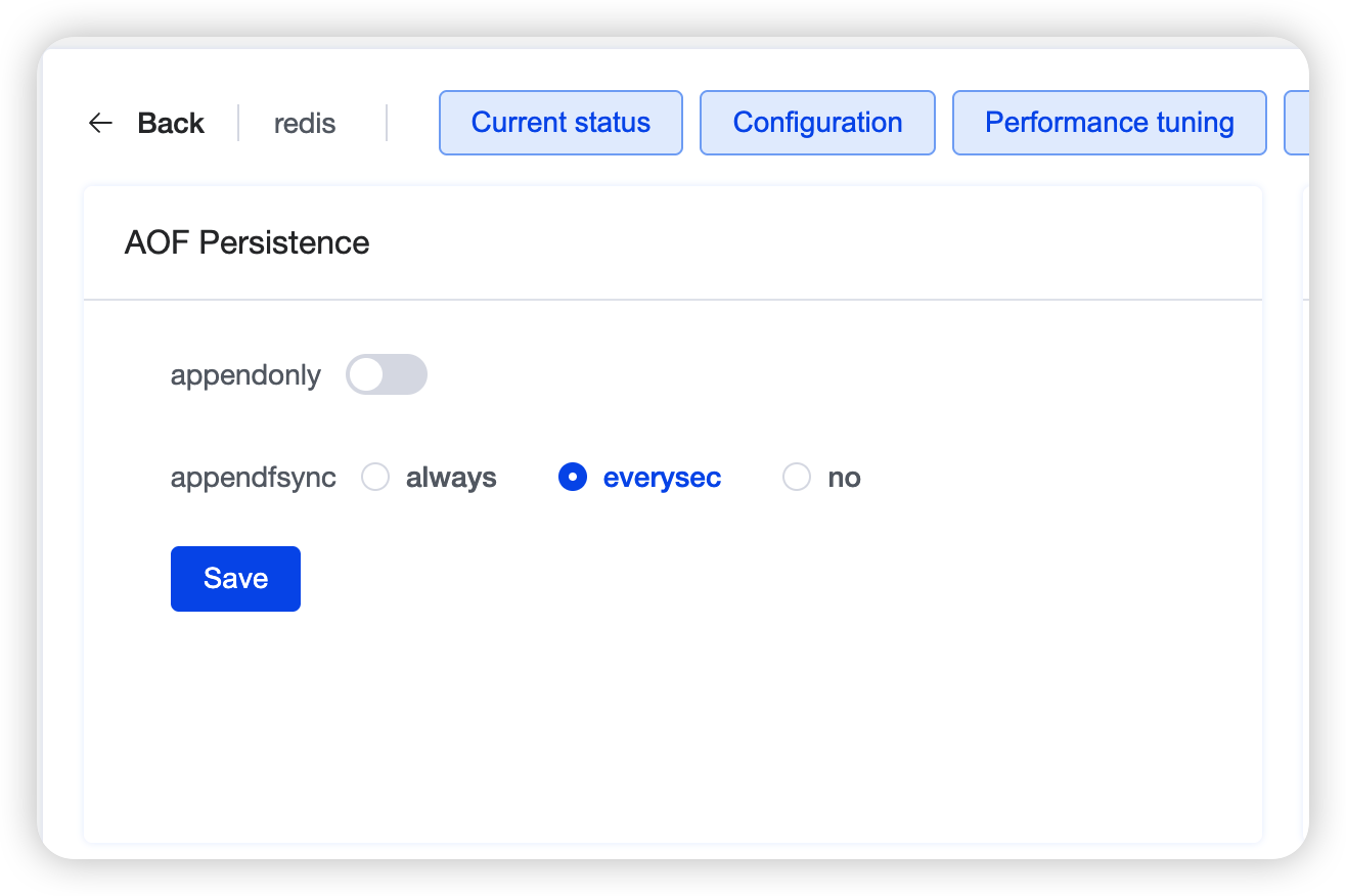 - appendonly: Whether to enable AOF persistence