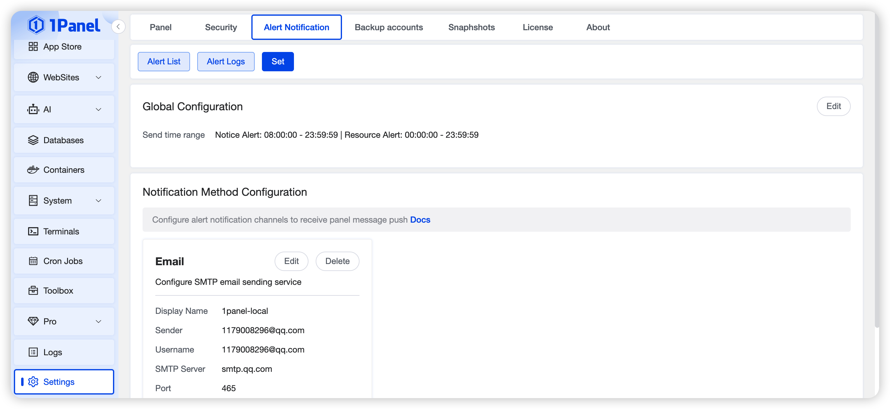 - Whitelist 1Panel server IP in WeCom/DingTalk/Feishu