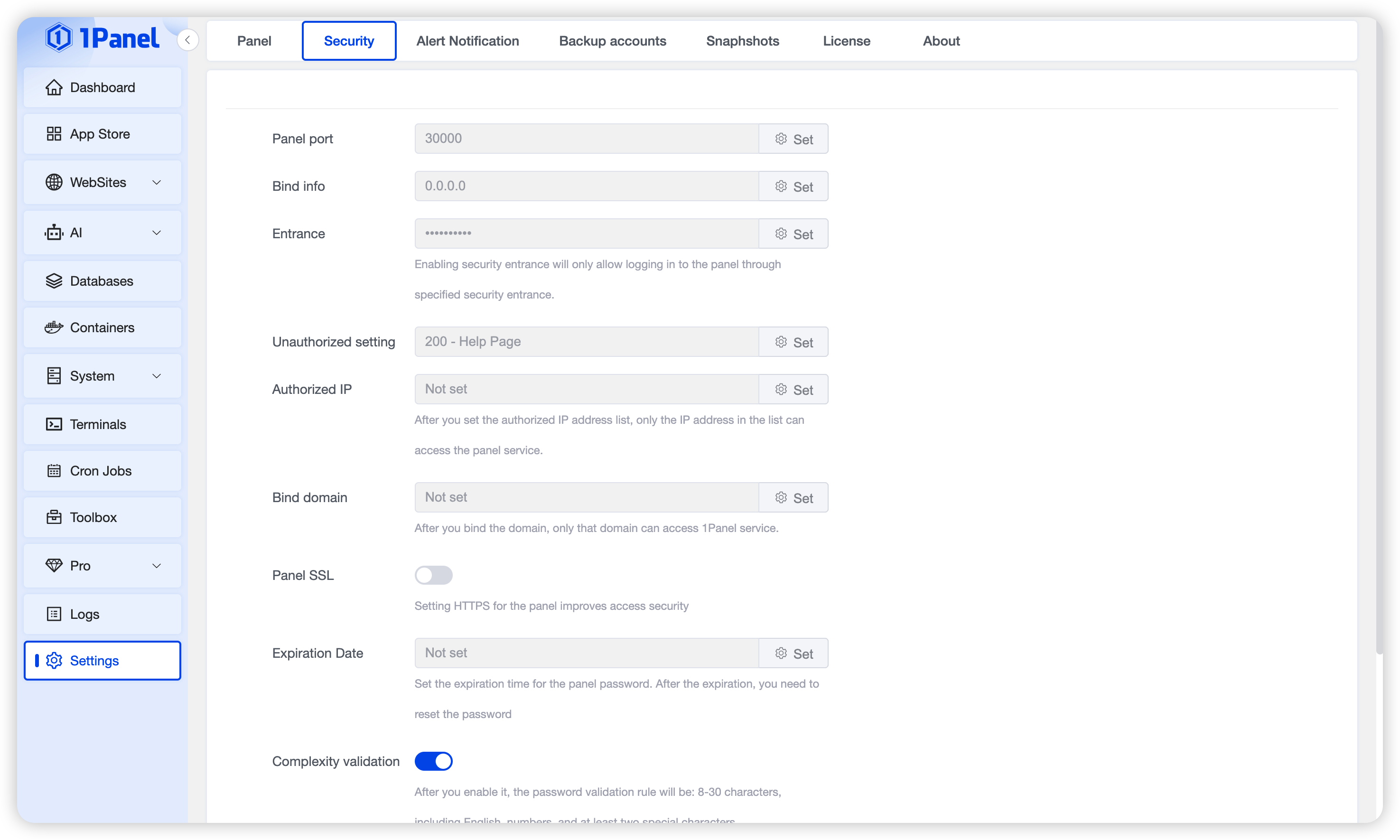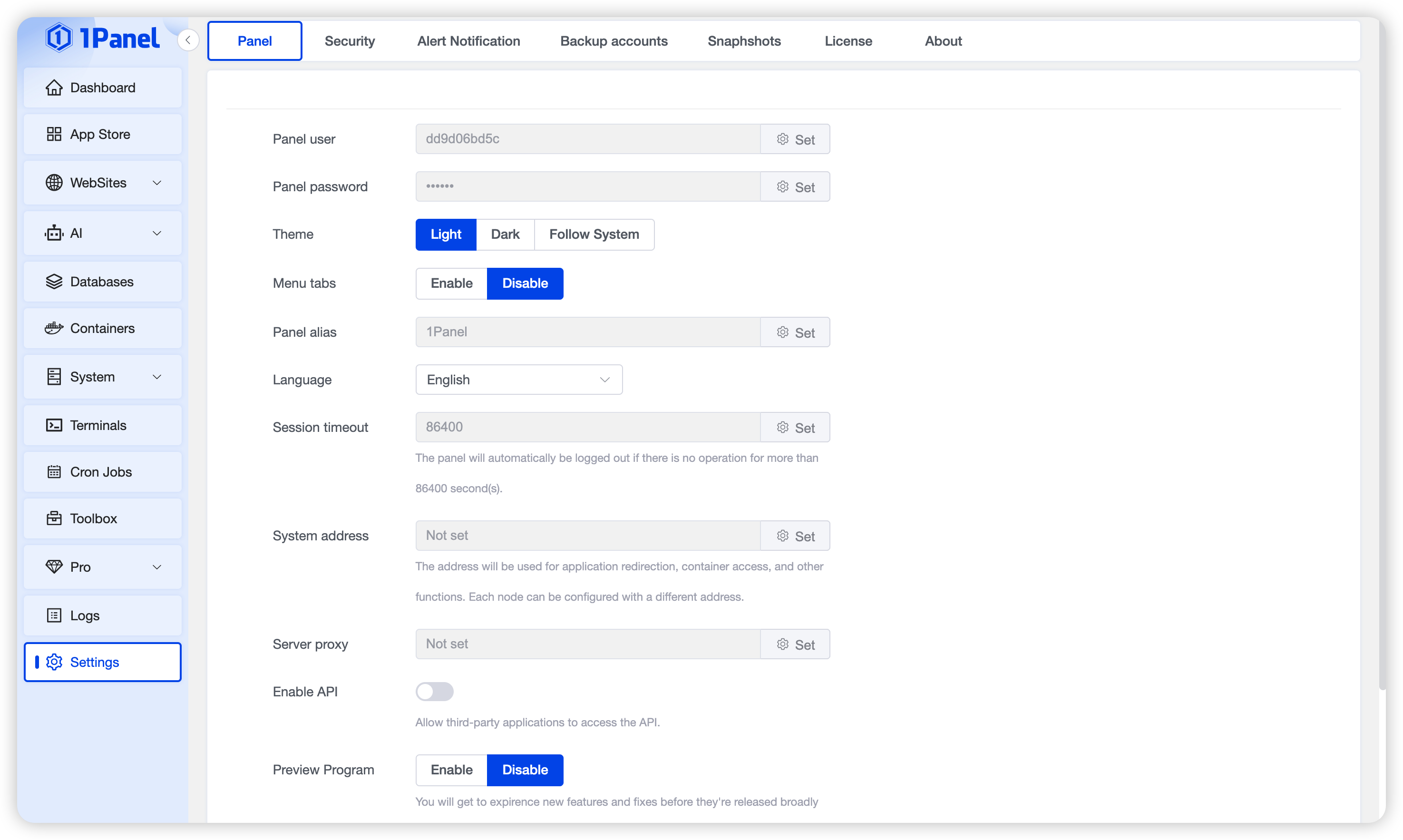 - Panel User: 1Panel supports one user per host. Used for login, initialized on first access.
