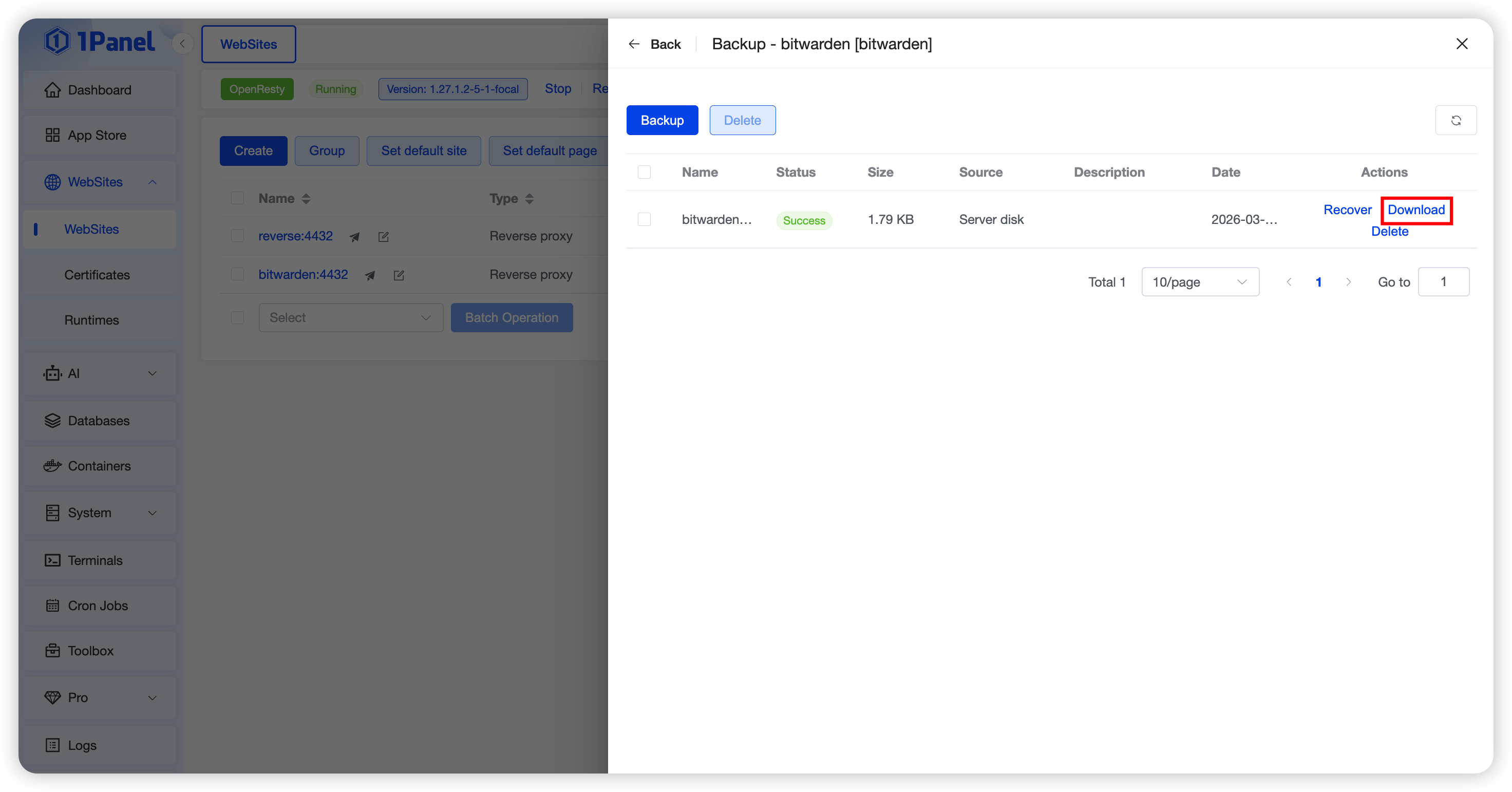 Supports downloading website backups to your local machine for later use in the upload backup page.