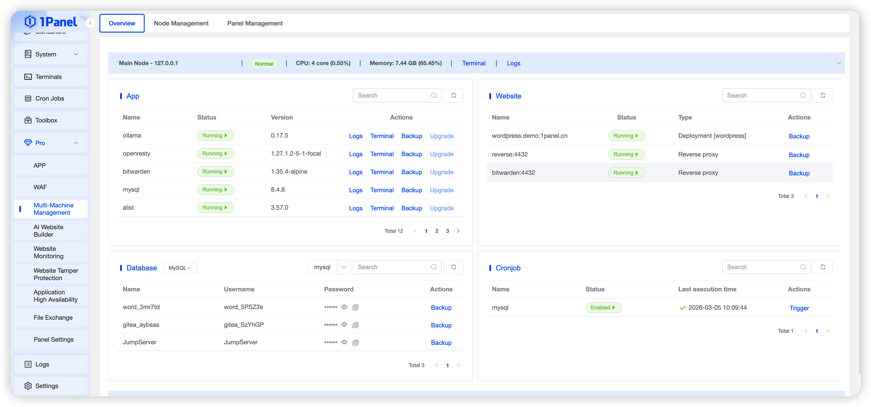 Running 1Panel OSS? Pro Edition adds WAF protection, unlimited AI agents, multi-node management, and priority support — starting at $80/year.